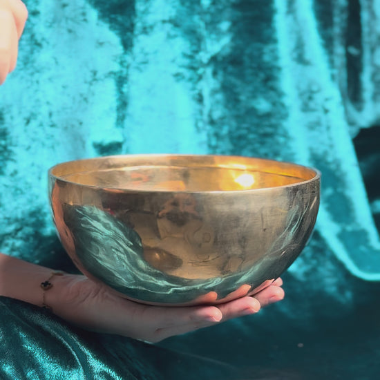 Особенности: чаша с необычными пропорциями (высокая и узкая), с ярким и чистым тоном. Частота 496 Гц создаёт глубокий, пронизывающий звук, хорошо подходит для медитации, гармонизации пространства и работы с нижними и средними чакрами.
